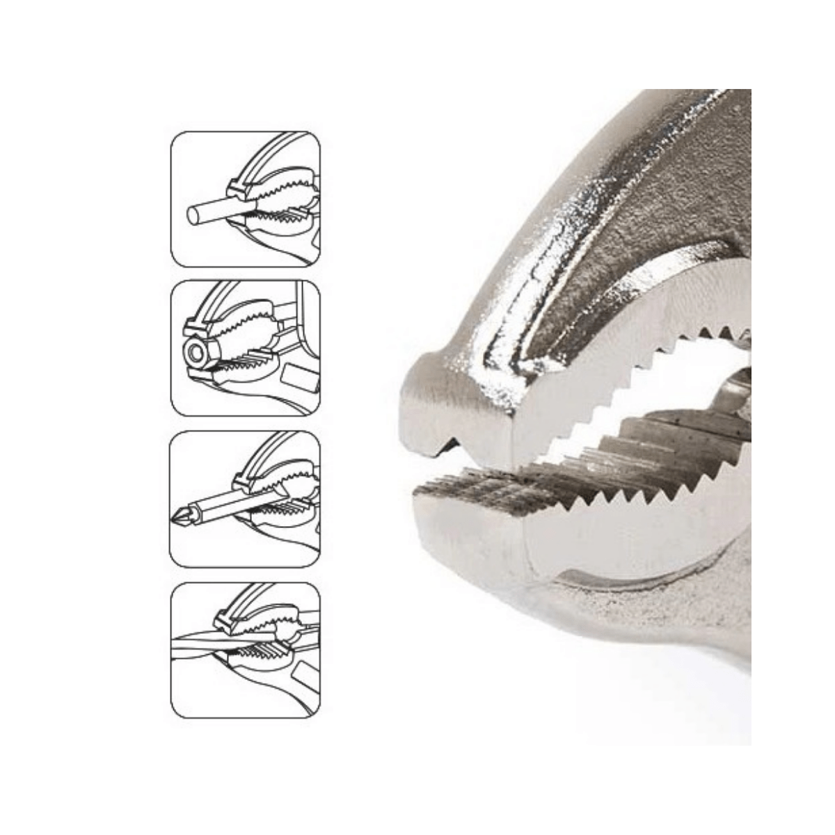El innovador diseño de ranura en V es perfecto para retorcer cables, tirar de pasadores y aflojar tuercas y cabezas de tornillos sin esfuerzo.